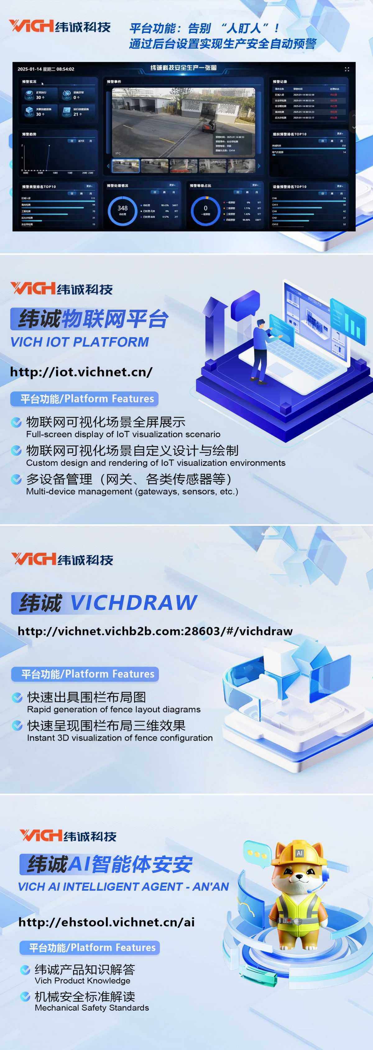同时,展位还配备四台一体机,供参观者现场体验纬诚科技研发的安全生产检测预警平台、物联网云平台、VICHDRAW等数字化平台,亲身感受智能化技术为工业安全带来的创新价值。
