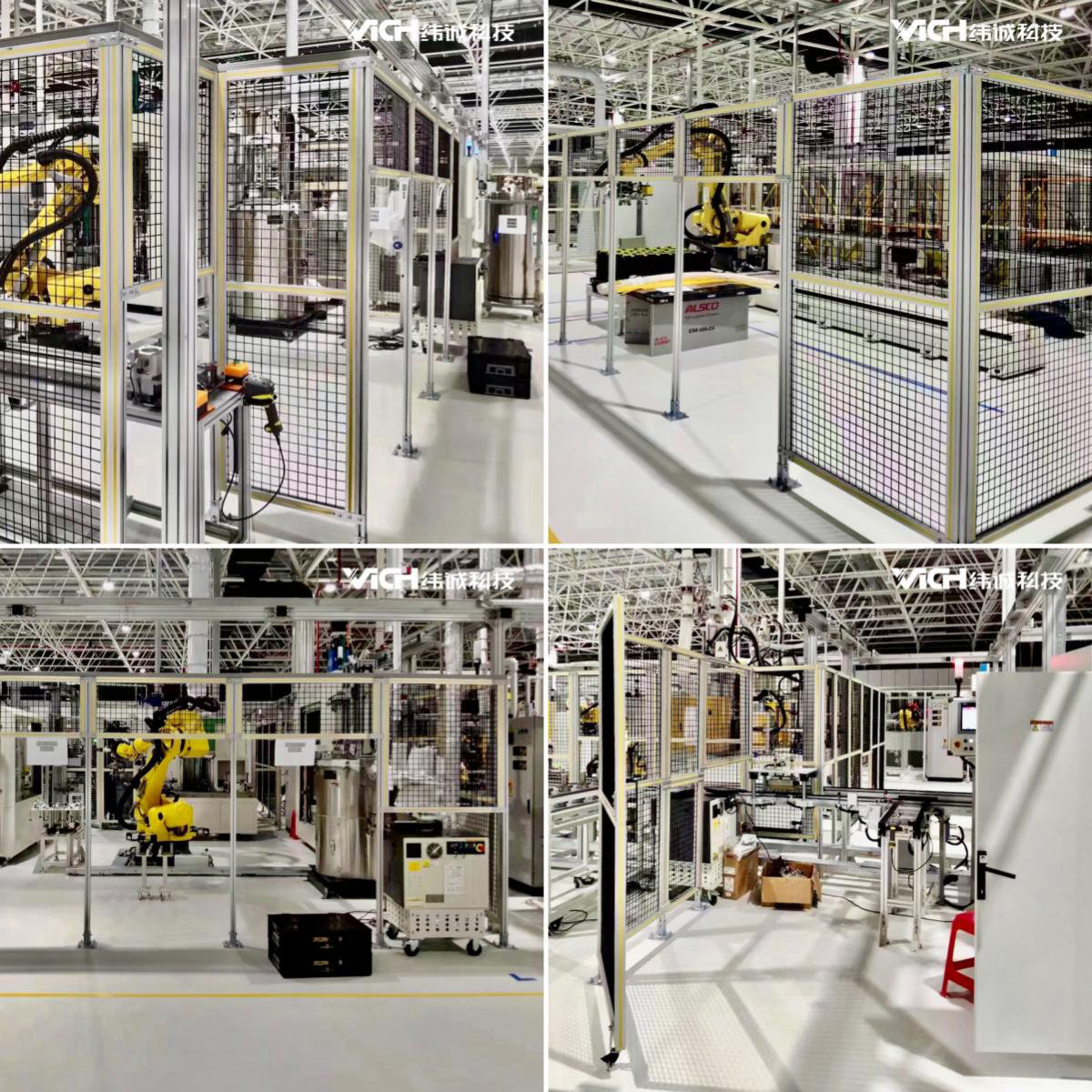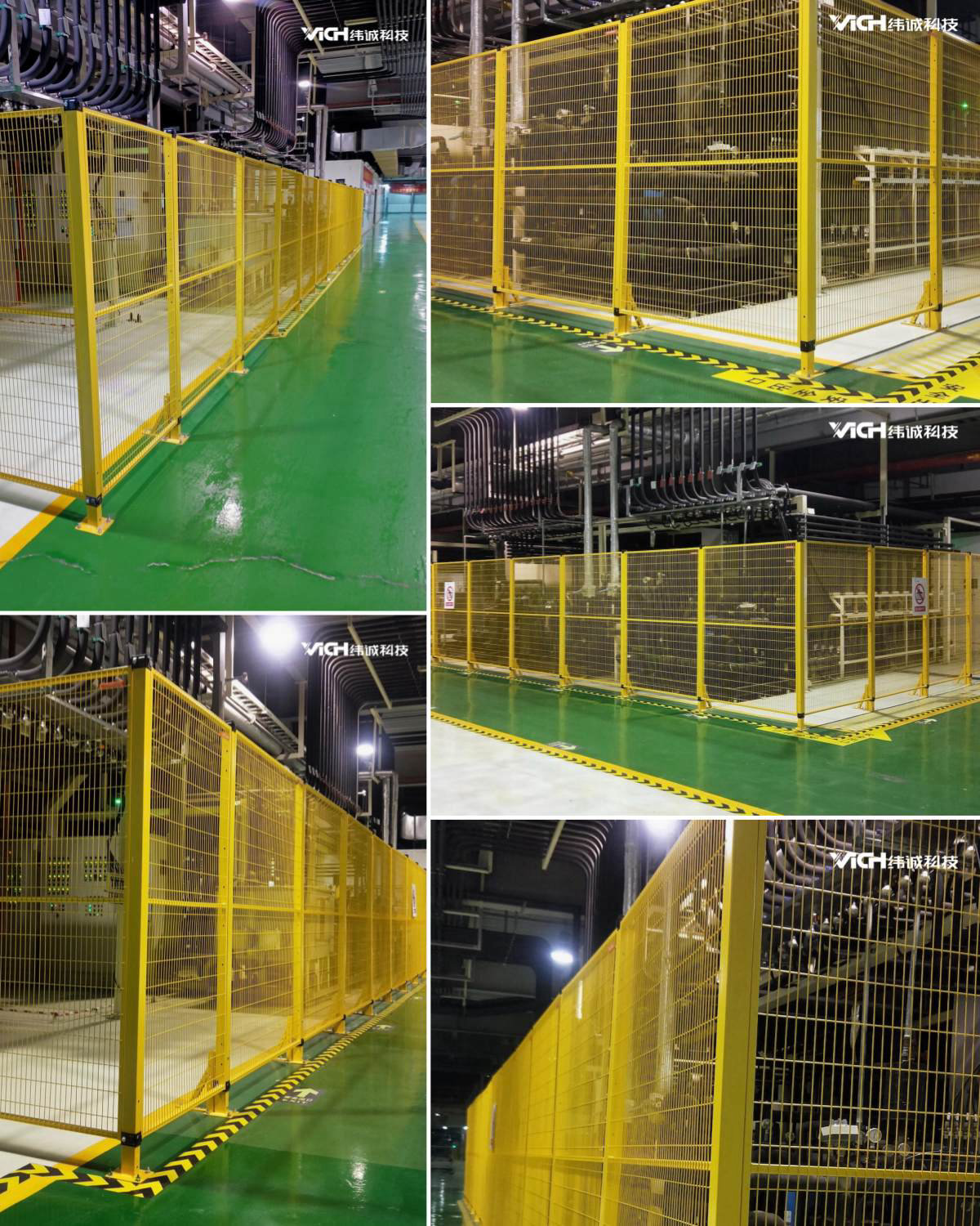 本项目采用纬诚科技碳钢系列围栏解决方案,以高强度碳钢方管作为主体框架,具备卓越的抗冲击性能,可充分满足各类工业场景的安全防护需求。该系列产品采用模块化设计理念,所有配件均实现标准化生产,现场仅需简单组装即可快速完成安装,大幅提升了施工效率并降低了安装成本。
